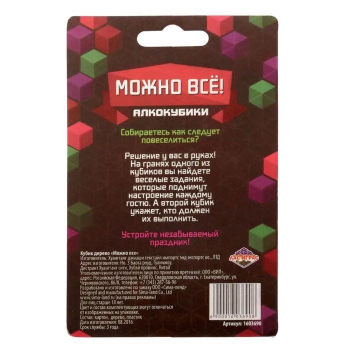 Купить кубик "можно все", алкокубики для принятия решений от 60 руб. с доставкой до пункта выдачи в Кинешме. Интернет магазин ДекаМаркет. Оплата при получении.